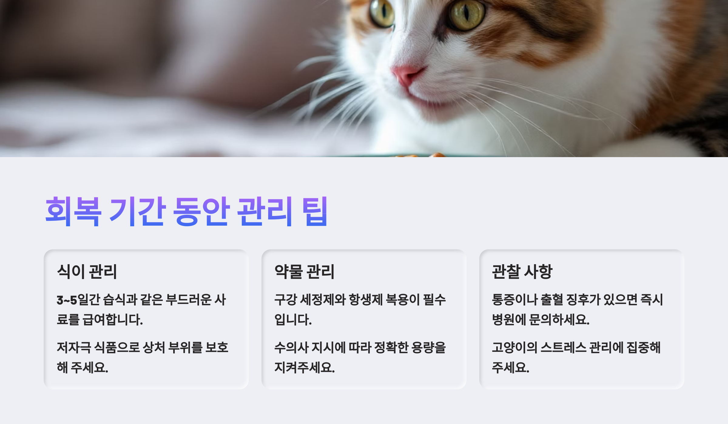 회복기는 짧지만 소중한 시간이에요. 고양이가 아픔 없이 다시 활짝 웃을 수 있도록 함께 힘내야 해요 🐾💛