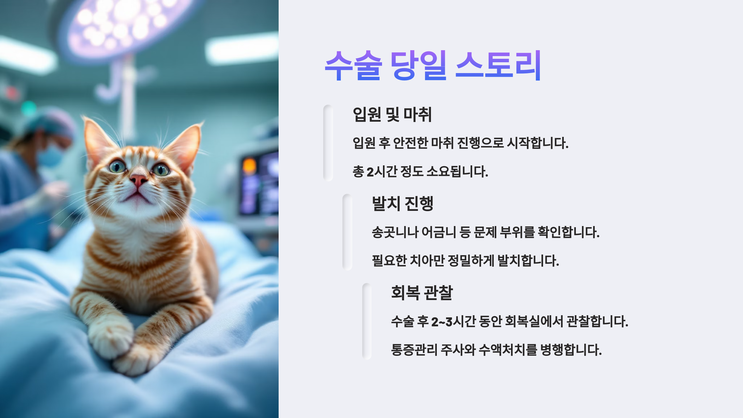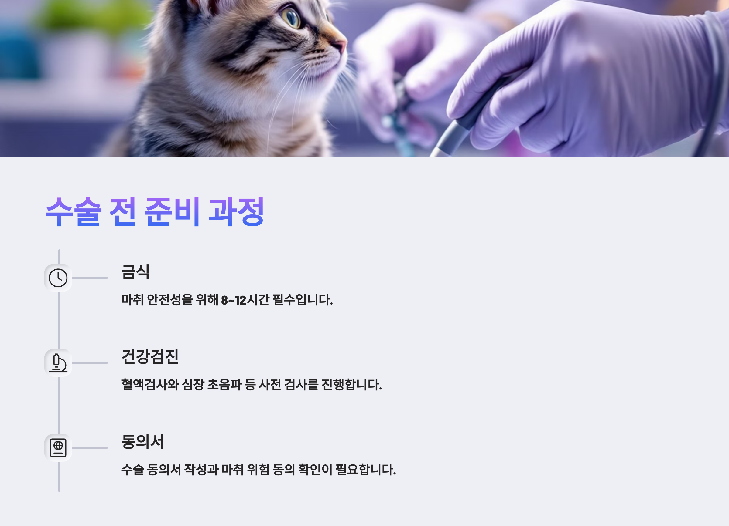 고양이도, 보호자도 긴장되는 순간이지만, 꼼꼼히 준비하면 수술 성공 확률이 훨씬 높아져요! 🩺🐱
