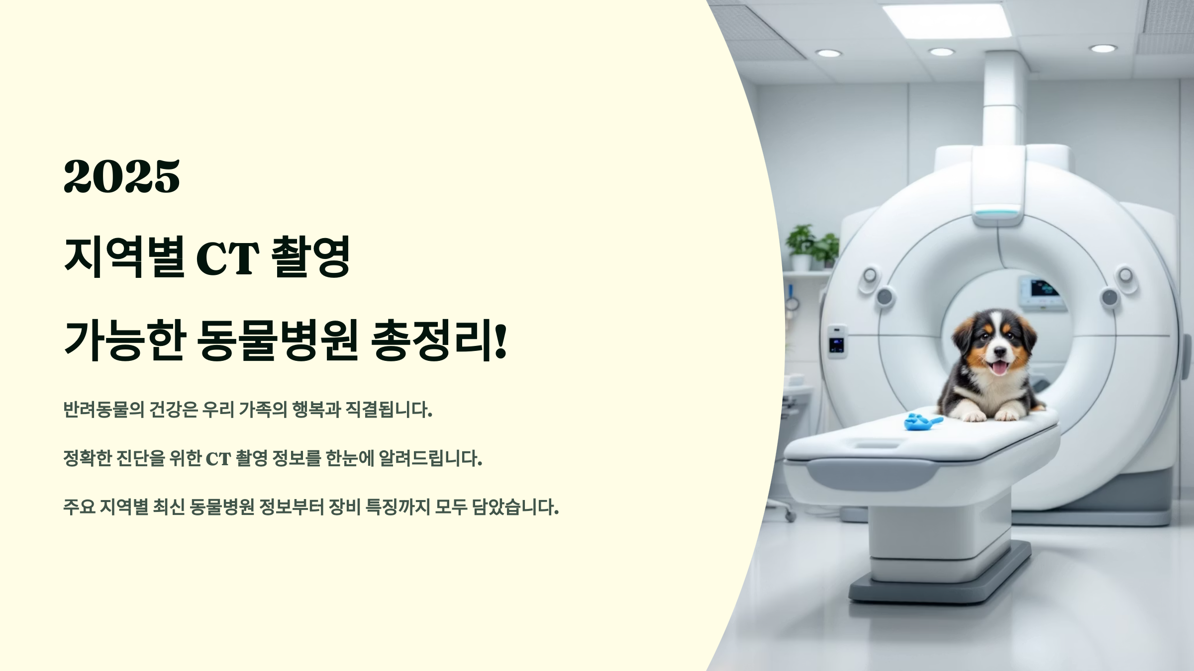 이 콘텐츠에서는 2025년 기준으로 전국 주요 도시별로 CT 장비를 갖춘 동물병원 목록을 완벽하게 정리했어요. 각 병원의 장비 수준, 가격대, 위치, 진료과목 등을 한눈에 비교할 수 있도록 구성했으니, 반려동물 건강이 걱정된다면 꼭 끝까지 확인해보세요! 🐶
