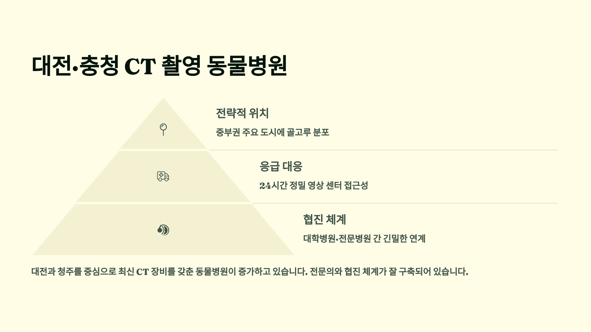 대전과 충청권은 대전광역시를 중심으로 CT 장비를 갖춘 병원이 비교적 고르게 분포되어 있어요. 특히 대전은 교통 접근성이 좋아 충북·충남 지역 보호자들도 많이 찾는 중심지로 자리잡고 있답니다.