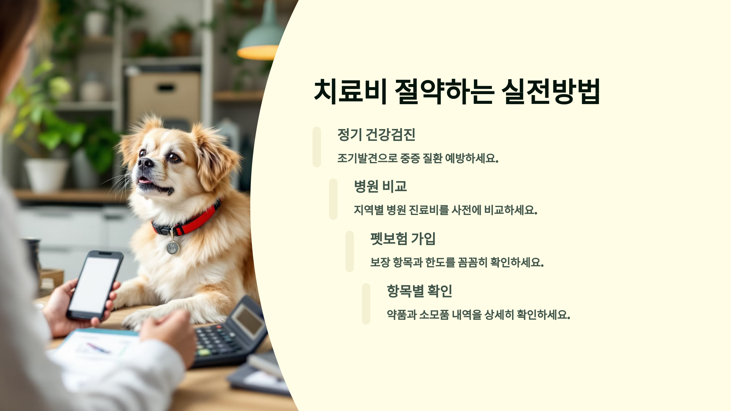펫보험 가입도 장기적으로는 큰 절약 효과가 있어요. 월 보험료는 부담스러울 수 있지만, 큰 치료비가 발생했을 때의 혜택을 생각하면 충분히 가치가 있어요. 특히 어린 나이에 가입할수록 보험료가 저렴하고 보장 범위도 넓어요. 또한 일부 병원에서는 단골 고객에게 할인 혜택을 제공하기도 하니까 평소 한 병원을 꾸준히 이용하는 것도 도움이 될 수 있어요. 야간이나 응급진료는 추가 비용이 발생하니까 가능하면 정규 진료시간에 치료받는 것이 경제적이에요.