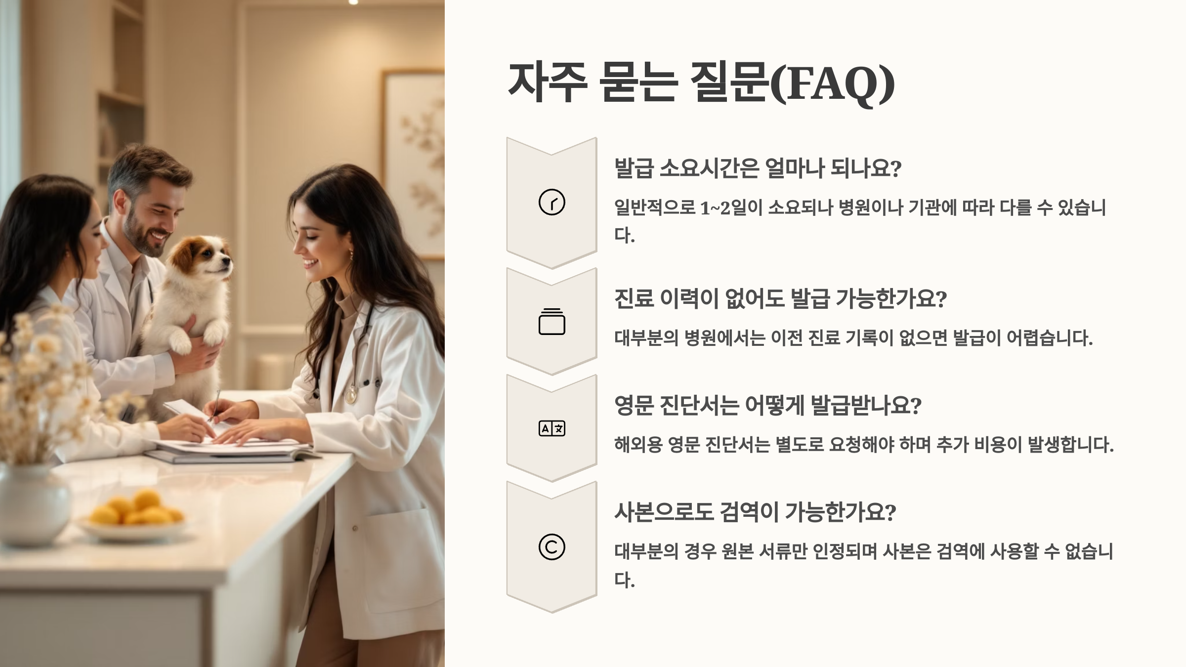 | 동물병원 | 가능 | 가장 일반적, 빠른 발급 |