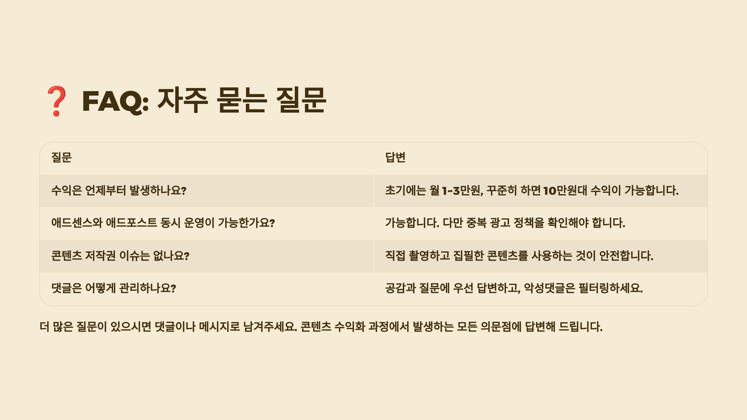 커뮤니티 관리도 수익화의 중요한 요소예요. 댓글에 성실히 답변하고, 독자들의 질문에 친절하게 응대하면 팬층이 형성돼요. 충성도 높은 팬들은 광고 클릭률도 높고, 제휴 상품 구매율도 높아요. 정기적인 소통으로 신뢰를 쌓는 것이 장기적인 수익 창출의 비결이에요.