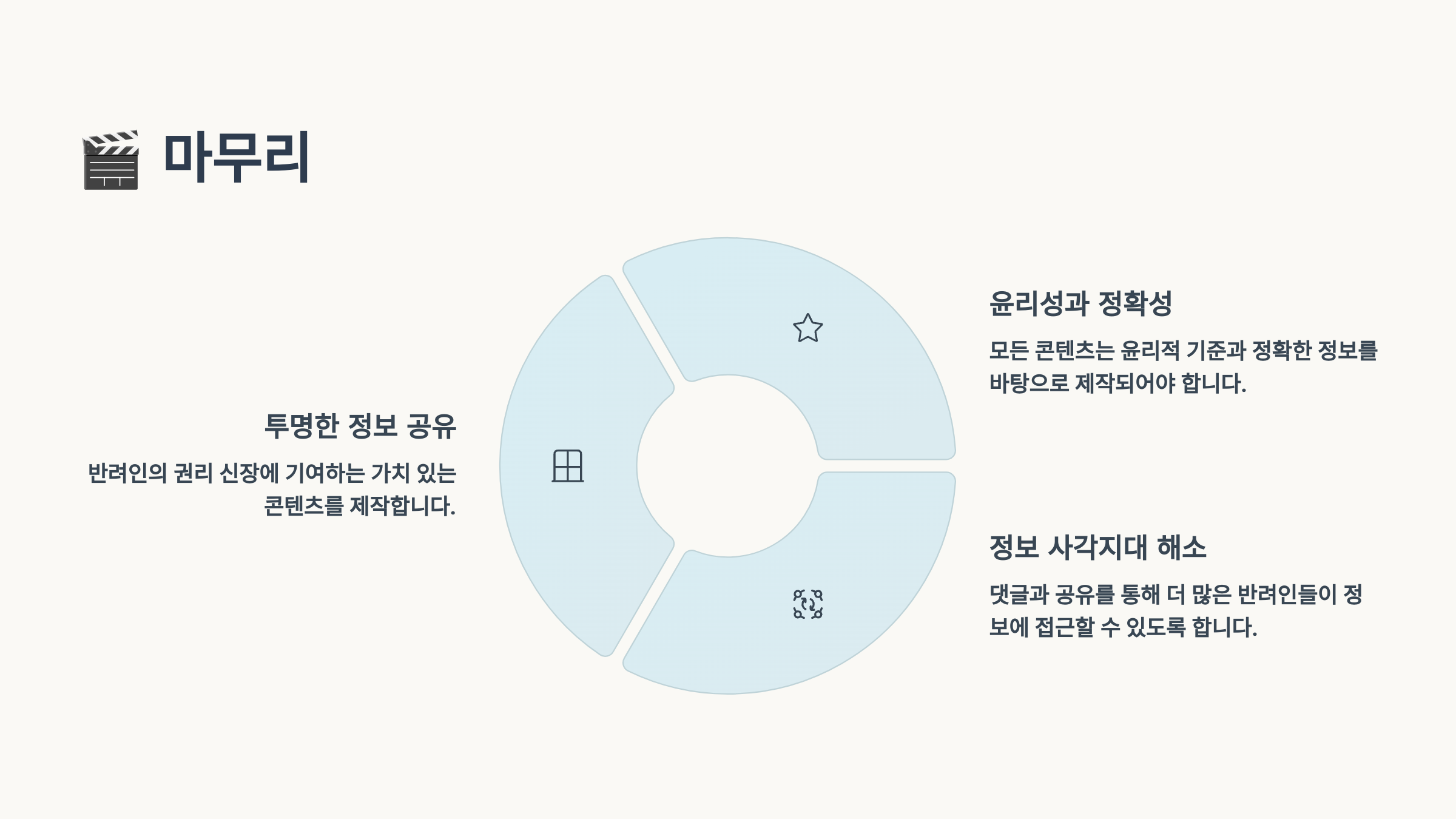 A8. 유용한 정보를 제공하면서 수익을 창출하는 것은 전혀 문제없어요. 다만 반려동물의 아픔을 이용한다는 비판을 받지 않으려면, 수익의 일부를 동물 보호 단체에 기부하거나, 정보 제공에 진정성을 갖는 것이 중요해요. "이 영상의 수익은 다음 치료비에 보태겠습니다" 같은 투명한 소통도 좋은 방법이에요.