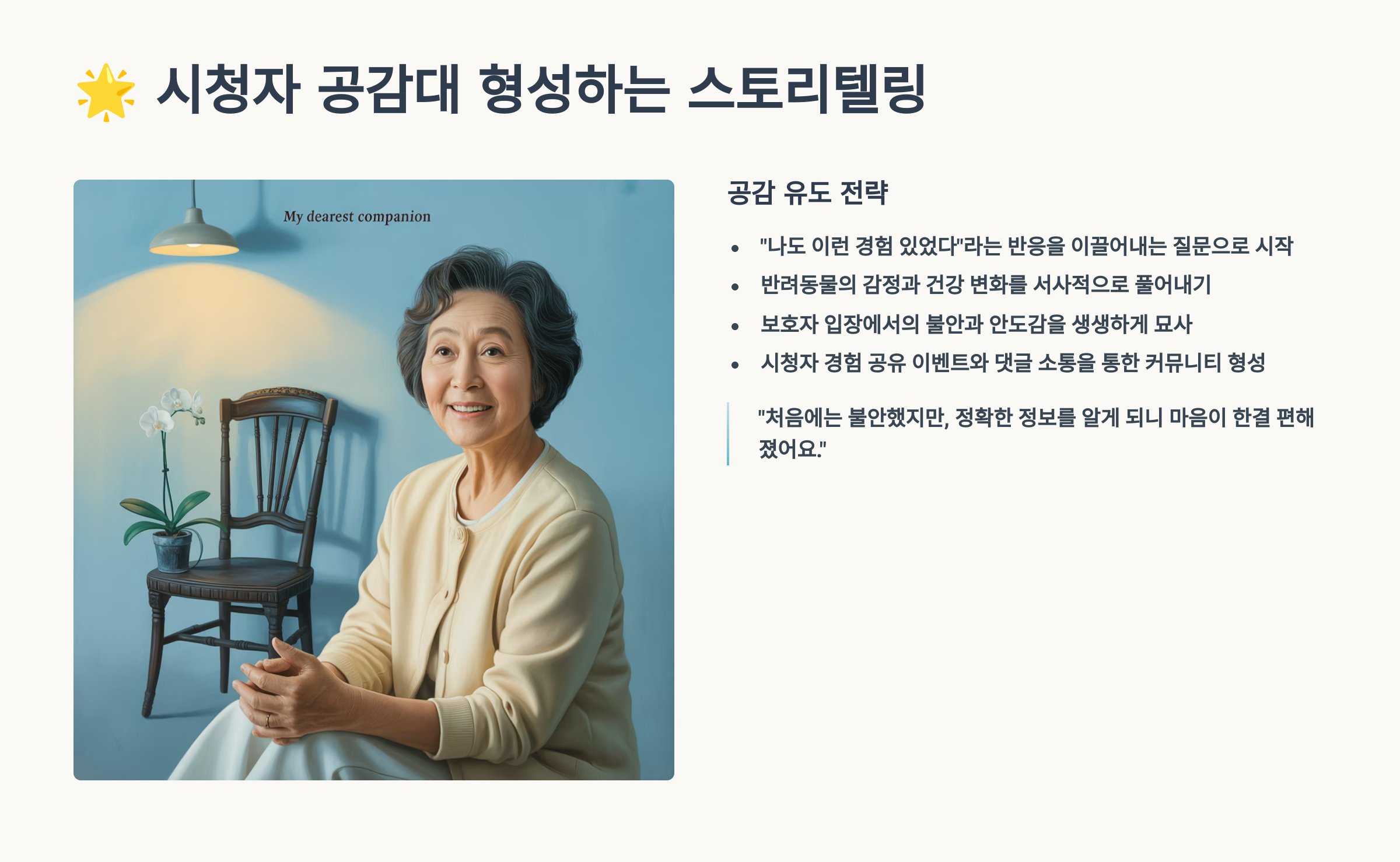 반려동물 병원비 콘텐츠에서 가장 중요한 것은 진정성 있는 스토리텔링이에요. 단순히 "비싸다"만 강조하는 것이 아니라, 반려동물에 대한 사랑과 책임감을 보여주는 것이 중요해요. "처음엔 금액에 놀랐지만, 우리 아이가 아픈 걸 보니 돈이 문제가 아니더라고요" 같은 솔직한 감정을 표현하면 많은 반려인들이 공감해요. 이런 진솔한 이야기가 시청자들과 깊은 유대감을 만들어내죠.