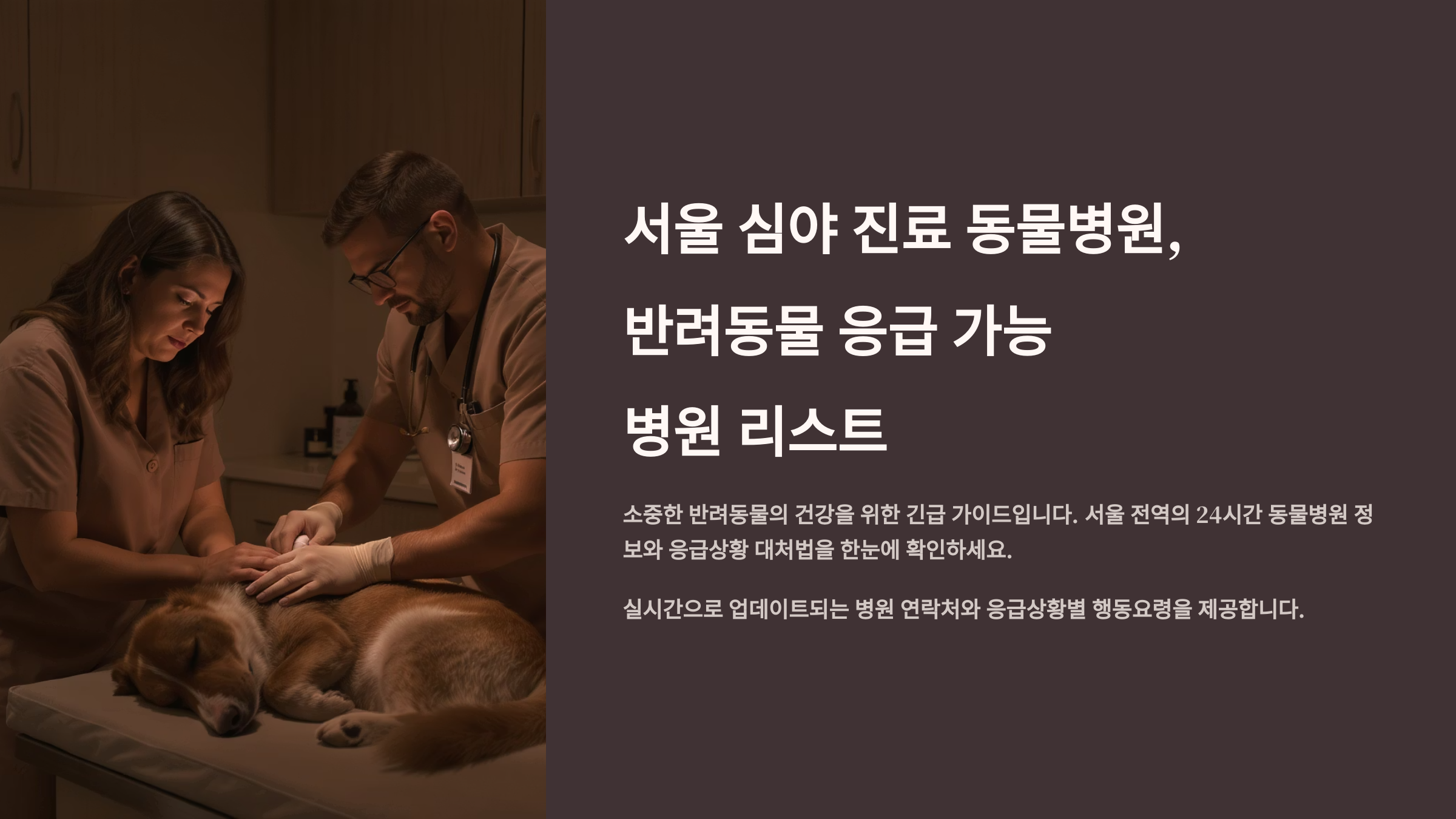 반려동물과 함께 살다 보면 예상치 못한 응급상황이 발생할 수 있어요. 특히 밤늦은 시간이나 새벽에 갑작스럽게 아픈 모습을 보이면 보호자분들은 당황하게 되죠. 서울에는 24시간 운영하는 동물병원들이 있어서 언제든지 응급진료를 받을 수 있답니다. 이 글에서는 서울 지역별 심야 진료 가능한 동물병원 정보와 응급상황 대처법을 자세히 알려드릴게요.