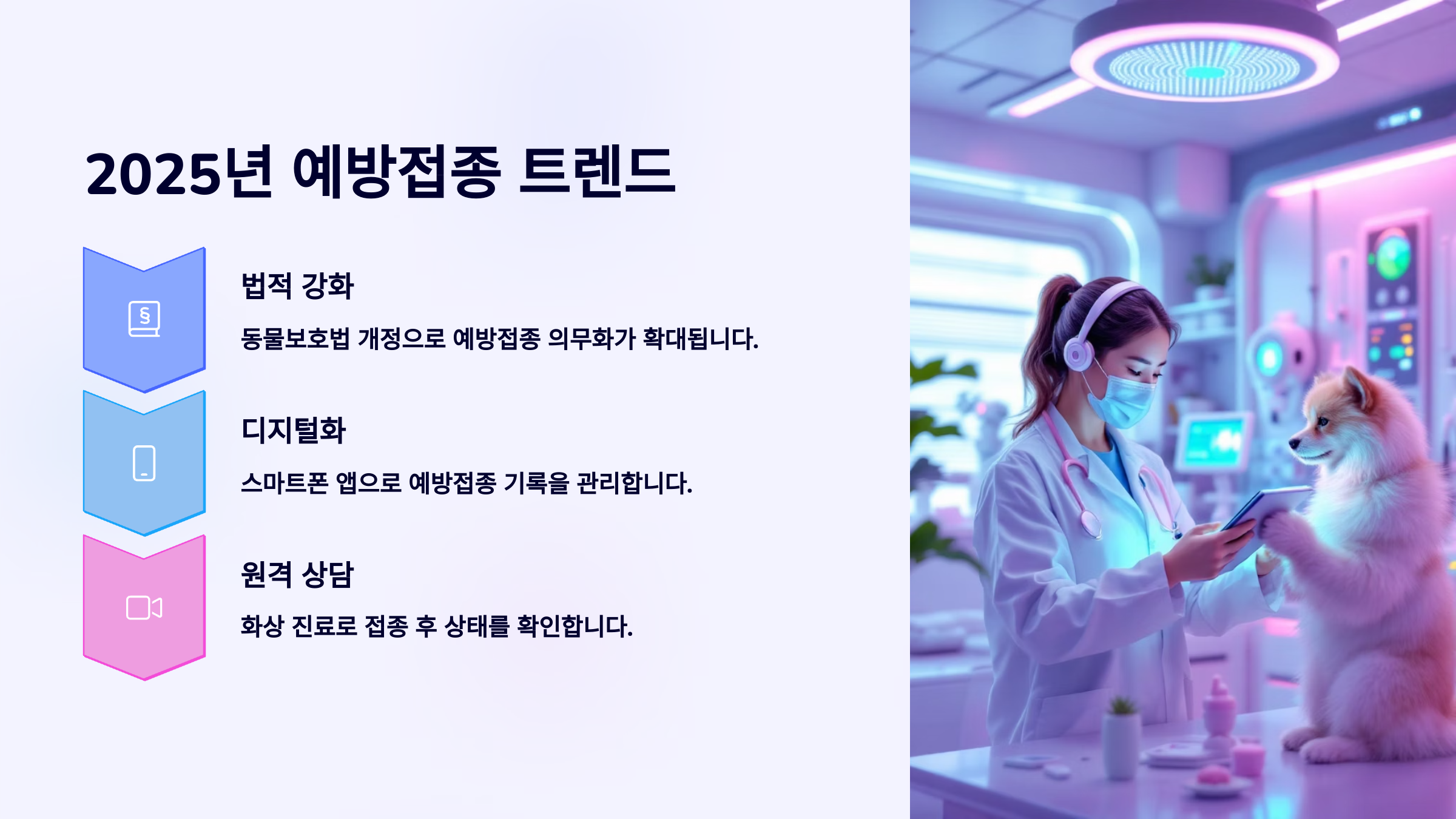 🧬 2025년 현재, 반려동물 예방접종에도 최신 기술과 맞춤형 관리 시스템이 도입되면서, 단순히 '맞는 것'을 넘어서 건강한 삶을 설계하는 수단이 되고 있어요. 이젠 접종도 트렌디하게 챙기는 시대죠!