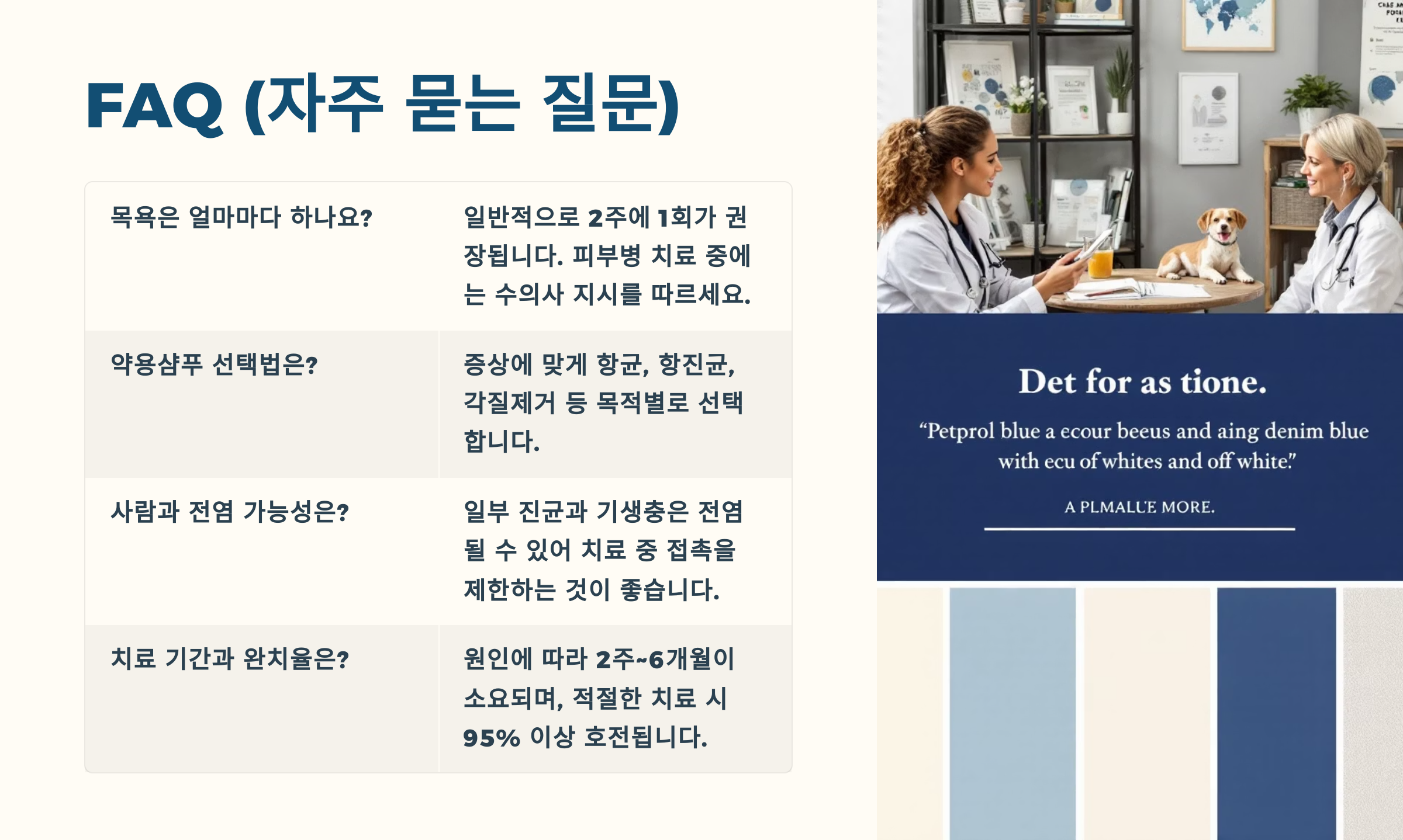 강아지 피부병 치료는 기본적으로 원인 치료 + 증상 완화를 동시에 진행해야 해요.