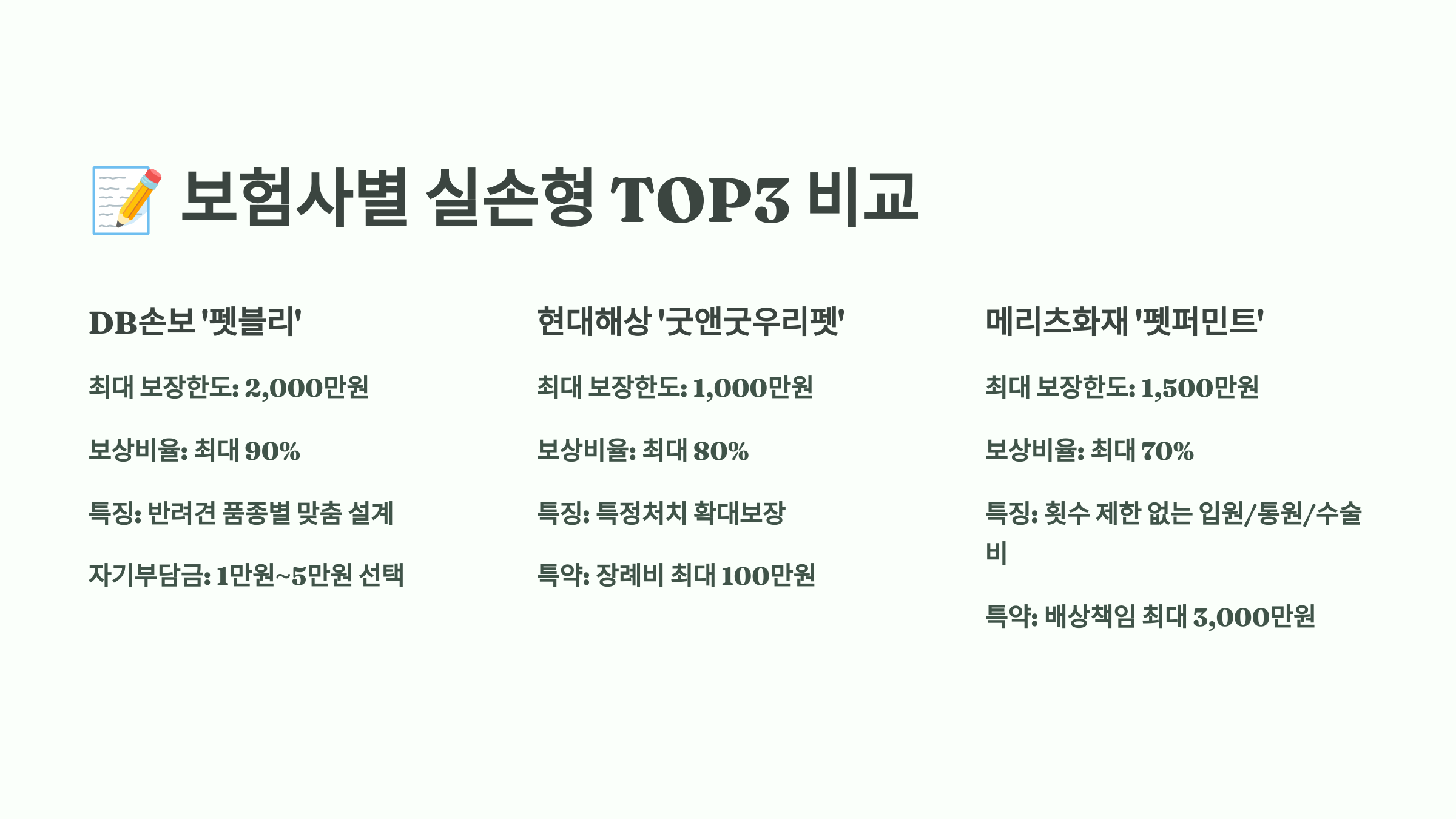 🏆 반려동물 실손형 보험 TOP3 요약