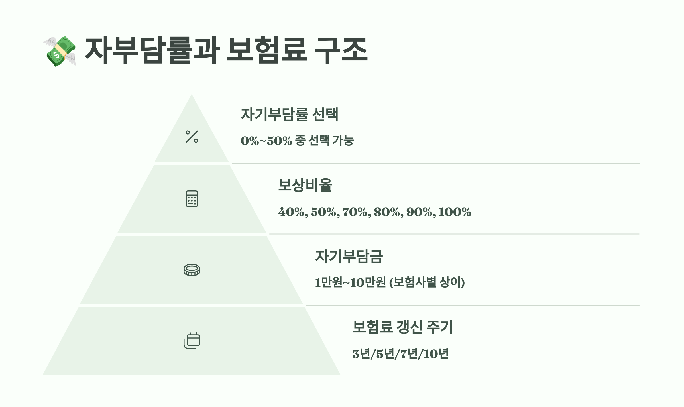 • 자부담률: 자부담률이 낮을수록 보험료는 비싸짐