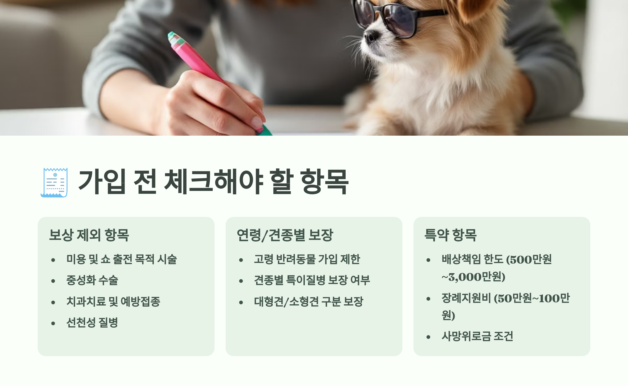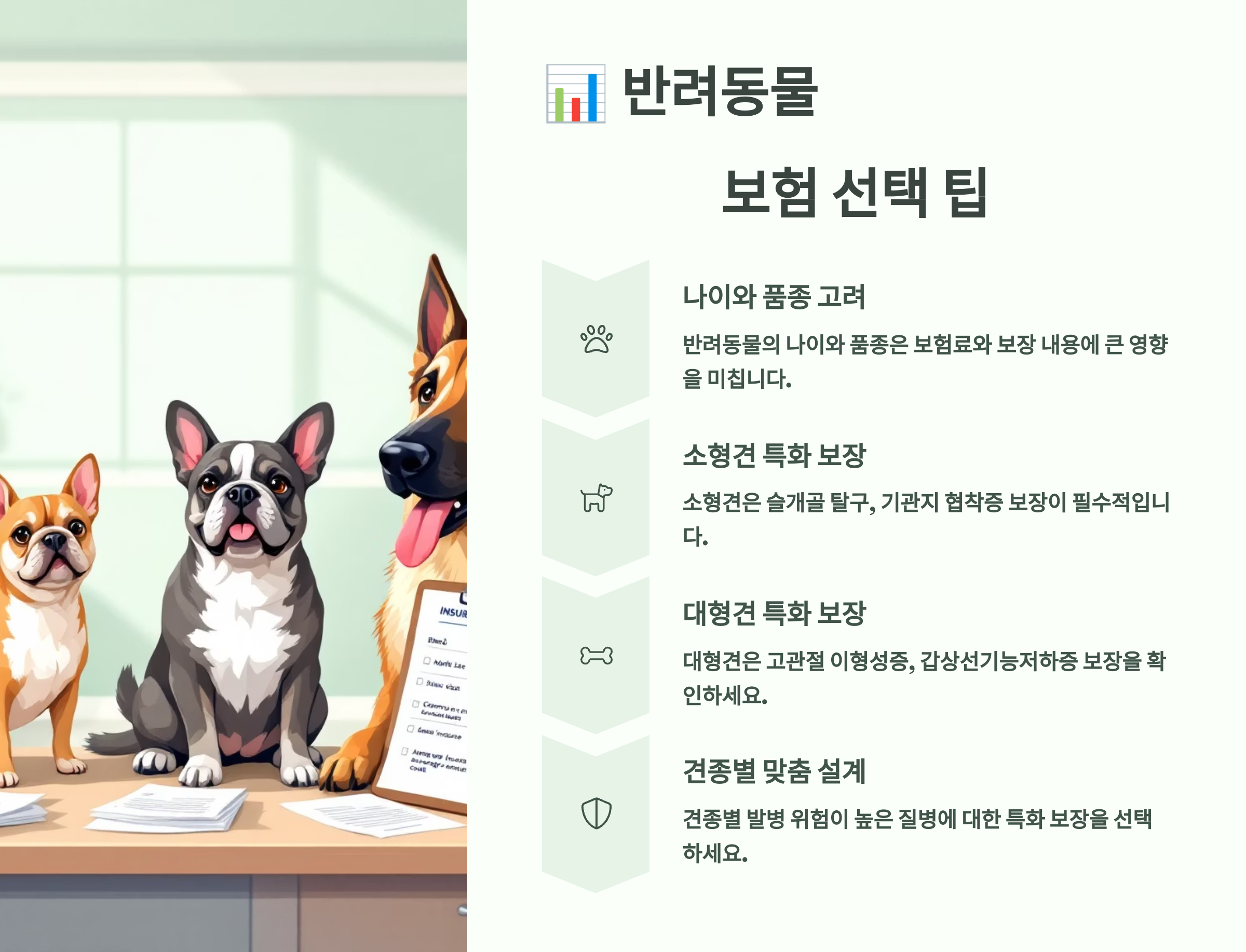 | 보험료 산정 기준 | 나이, 견종, 보장항목 | 매년 갱신 시 상승 가능 |