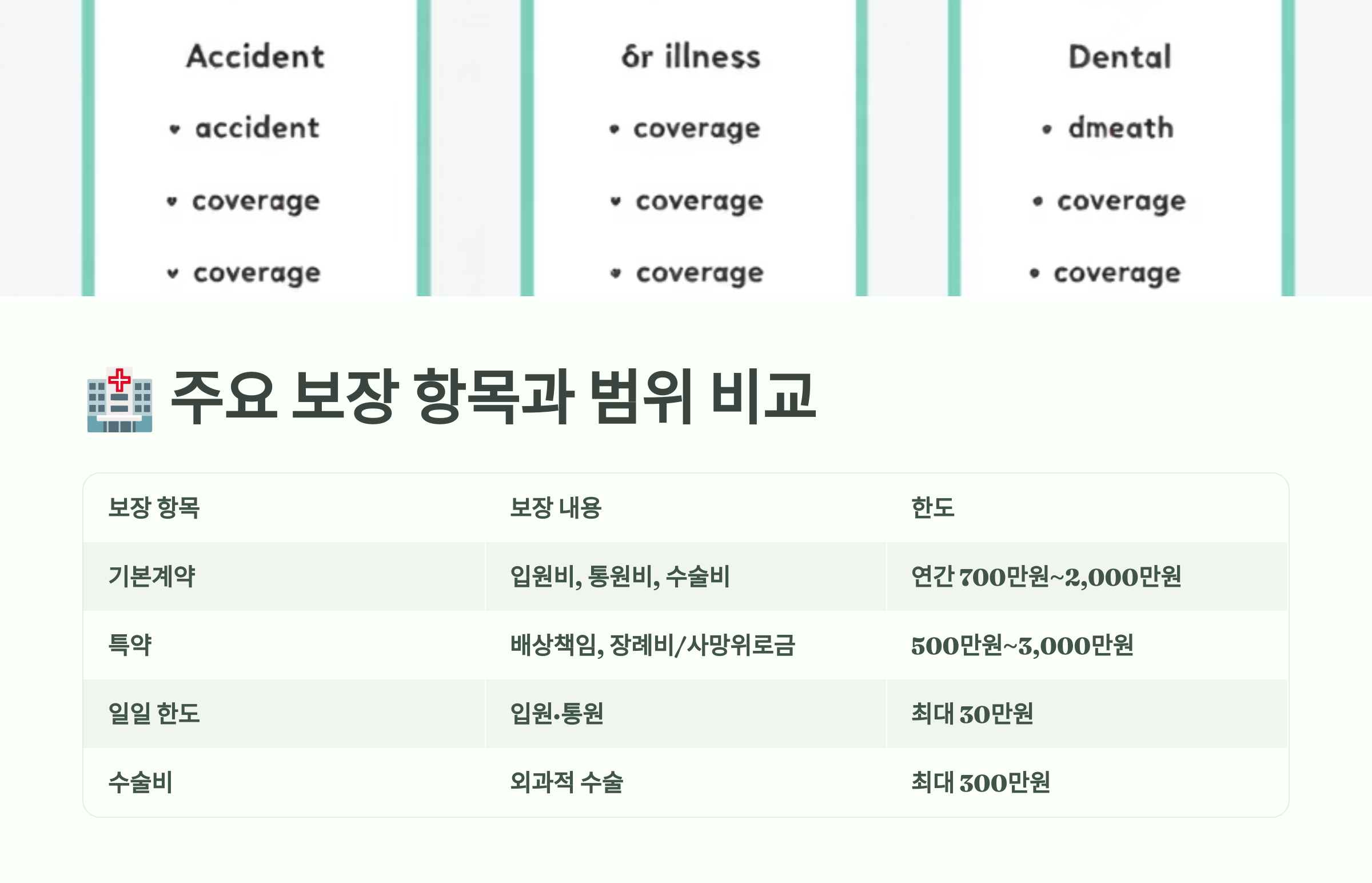 🏥 주요 보장 항목과 범위 비교