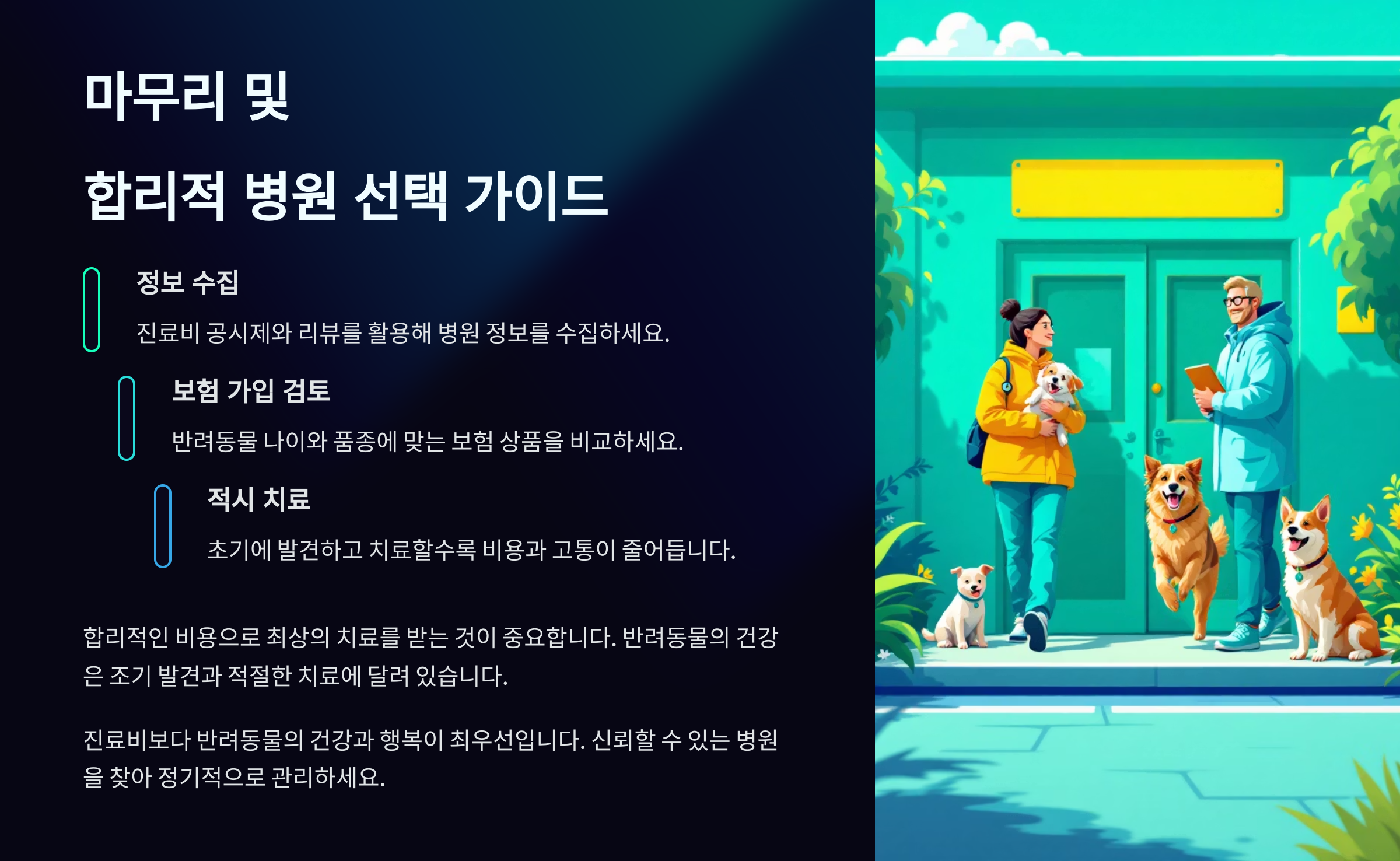 수술은 수의사가 진행하지만, 성공적인 회복은 보호자의 준비와 관리에 달려 있어요. 수술 전에는 정확한 정보를 숙지하고, 수술 후에는 철저한 모니터링과 케어가 필요하답니다. 🩺🐶🐱
