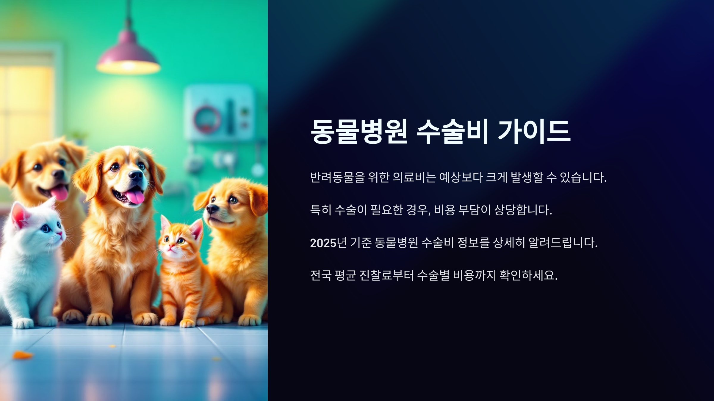 하지만 수의학적 수술은 사람과 달리 건강보험이 적용되지 않아 병원마다 가격이 천차만별이에요. 그래서 많은 보호자들이 “도대체 평균이 얼마지?”, “보험은 진짜 도움 되나?”, “지역 차이도 큰가요?” 같은 궁금증을 가지고 있답니다.