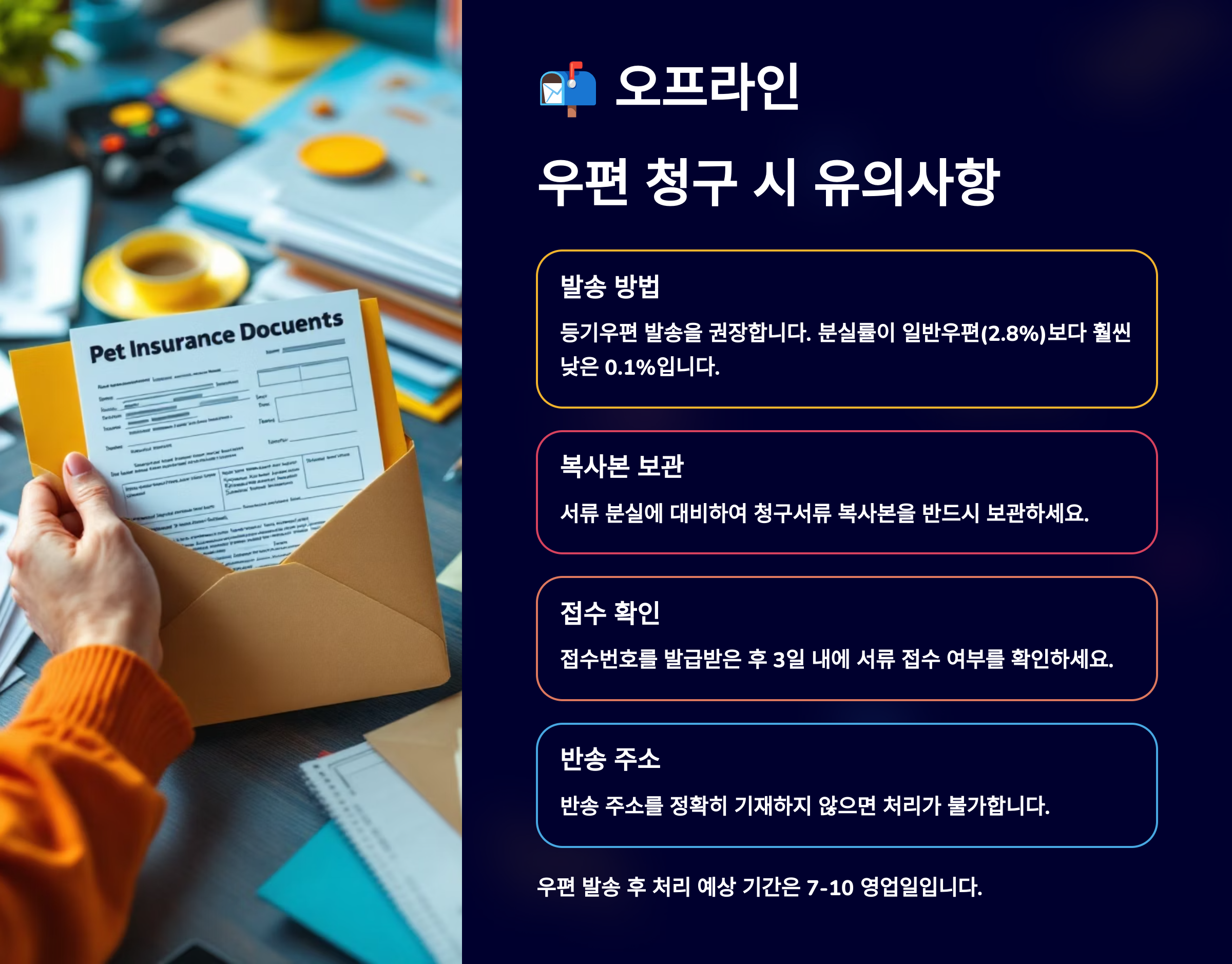 | 봉투 표기 | “펫보험금 청구서류 재중” 표시 |