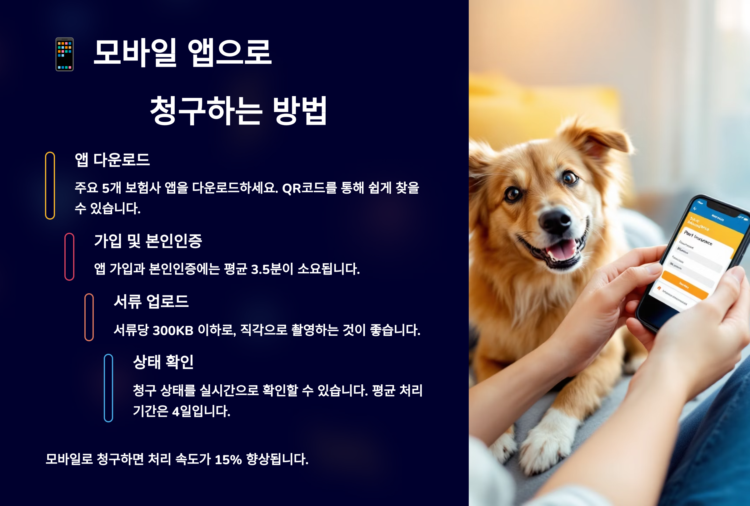 2025년 현재, 대부분의 반려동물 보험사는 모바일 앱을 통해 간편하게 청구할 수 있는 시스템을 제공하고 있어요. 앱을 통해 영수증과 서류 사진만 업로드하면 청구가 완료돼요.