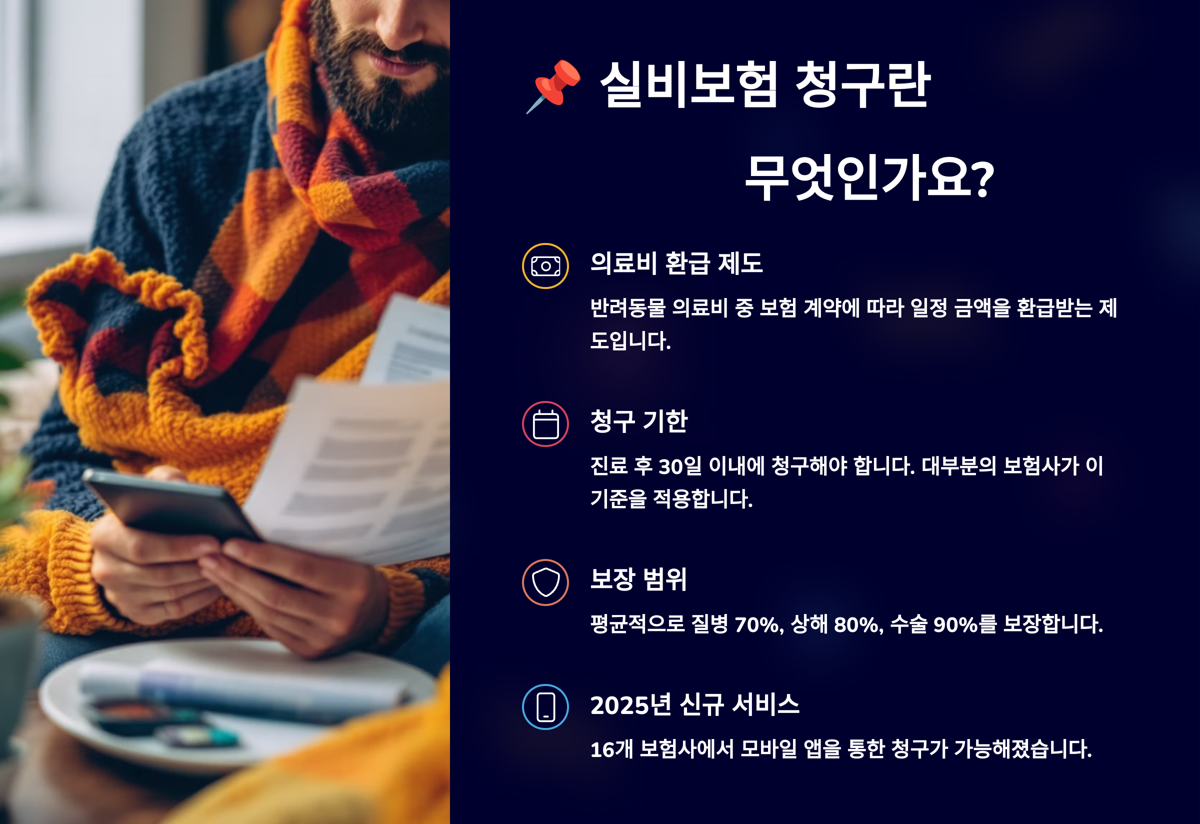 반려동물 실비보험 청구는 반려동물이 병원에서 진료받은 비용 중 일부를 보험사로부터 돌려받는 절차예요. 사람의 실손의료보험처럼, 치료 목적의 진료를 받은 뒤 영수증과 진료기록을 제출하면 일정 금액을 환급받을 수 있어요.