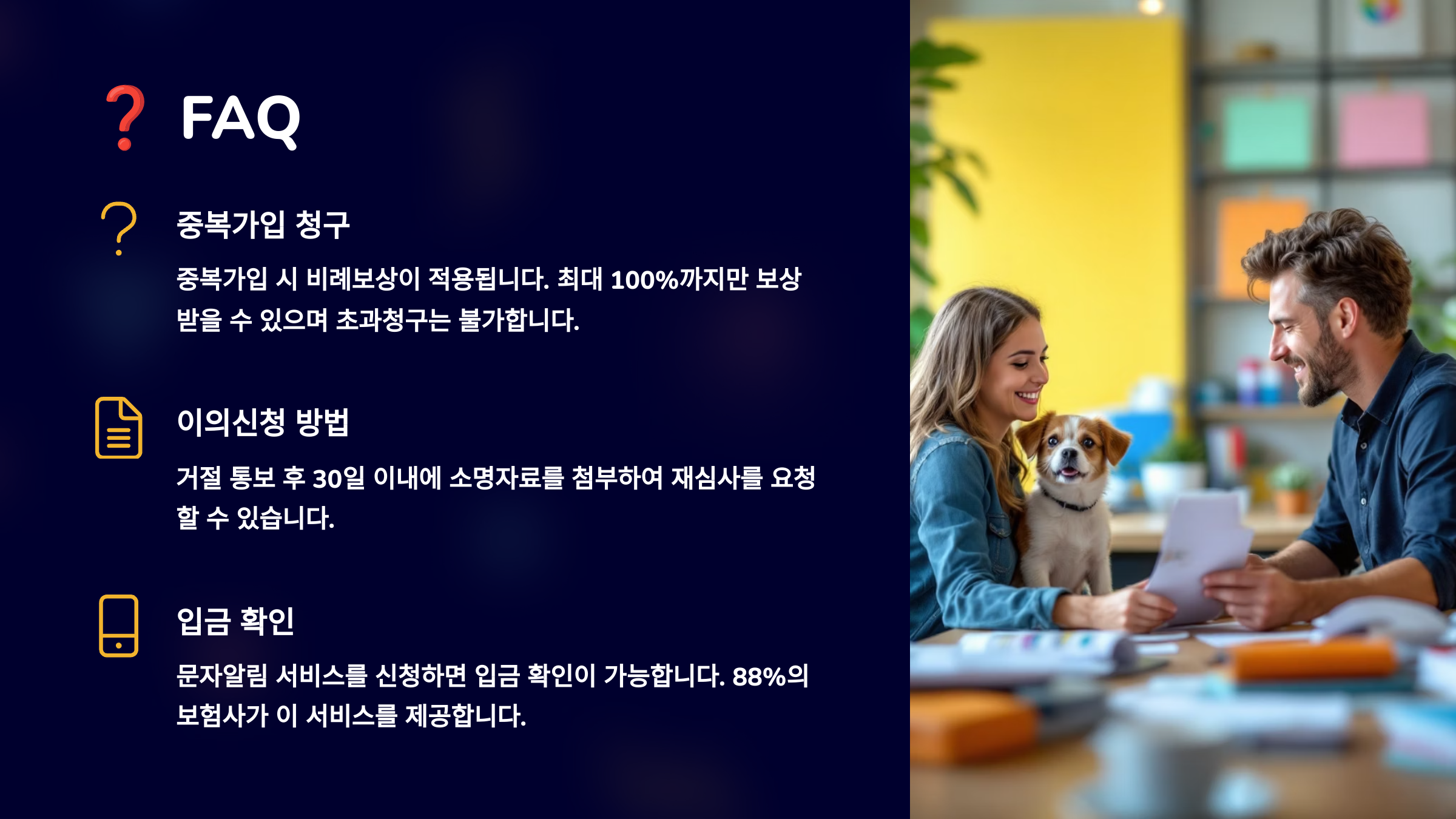 A8. 아니에요! 이의신청 또는 재심사 요청이 가능해요. 수의사 소견서, 증빙서류를 보완해 재접수할 수 있어요.