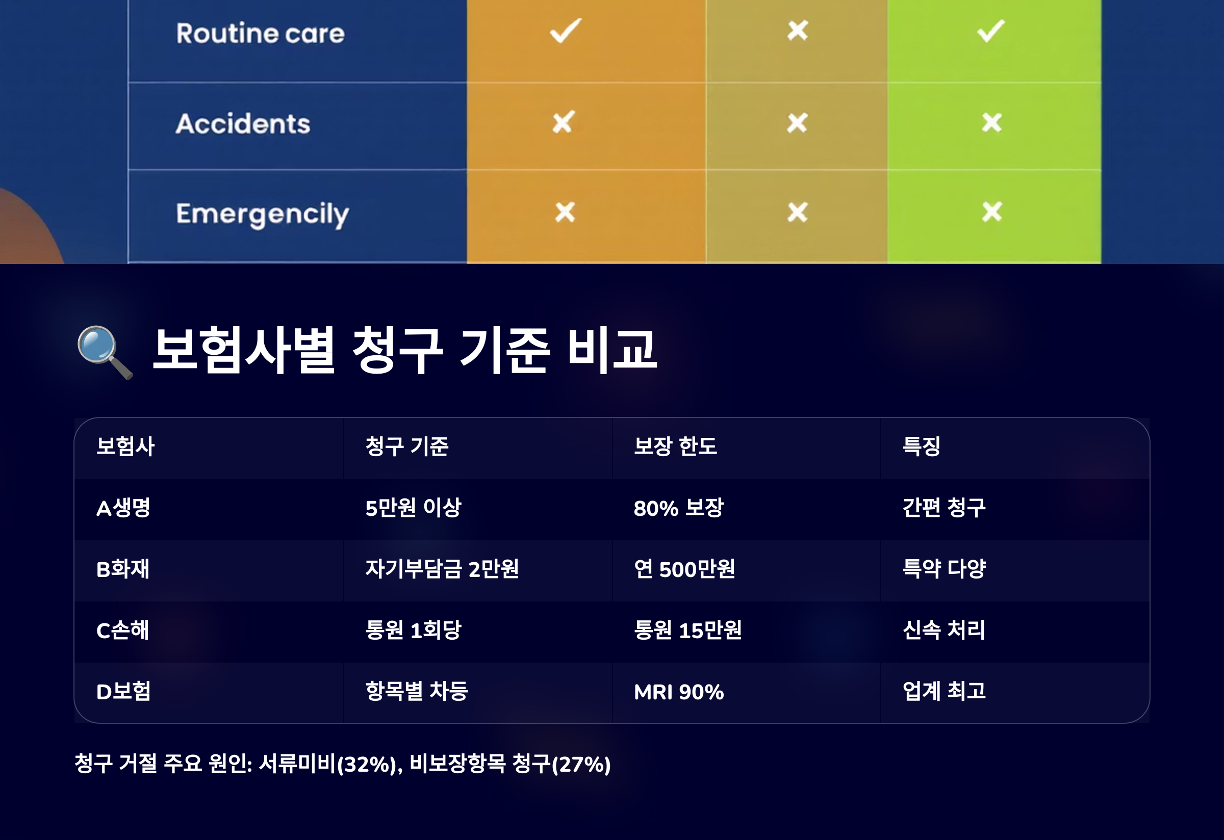 🔍 보험사별 청구 기준 비교