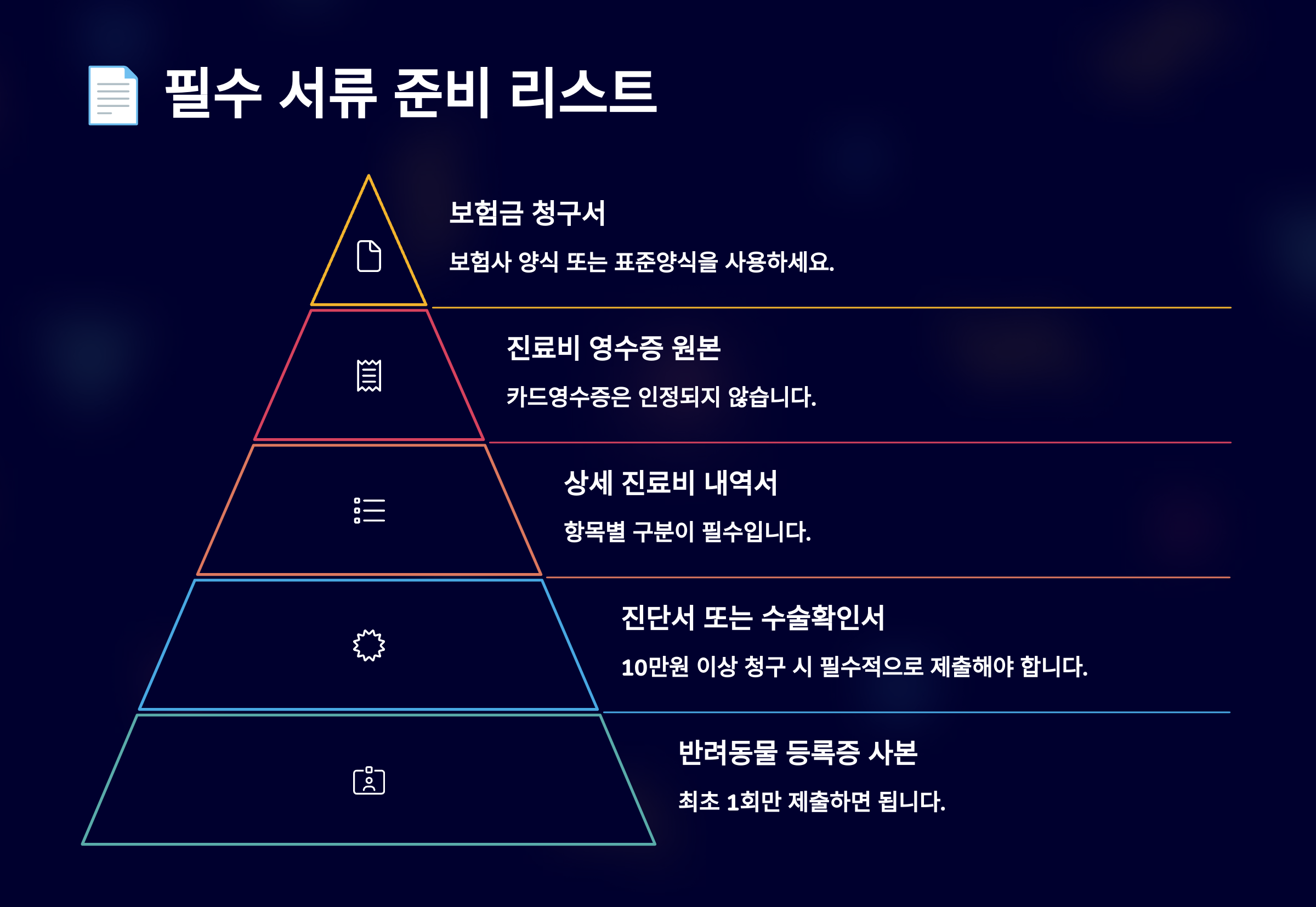 반려동물 실비보험을 청구할 때 가장 중요한 것은 정확한 서류 준비예요. 서류가 누락되거나 내용이 불명확하면 보상이 지연되거나 거절될 수 있어요.