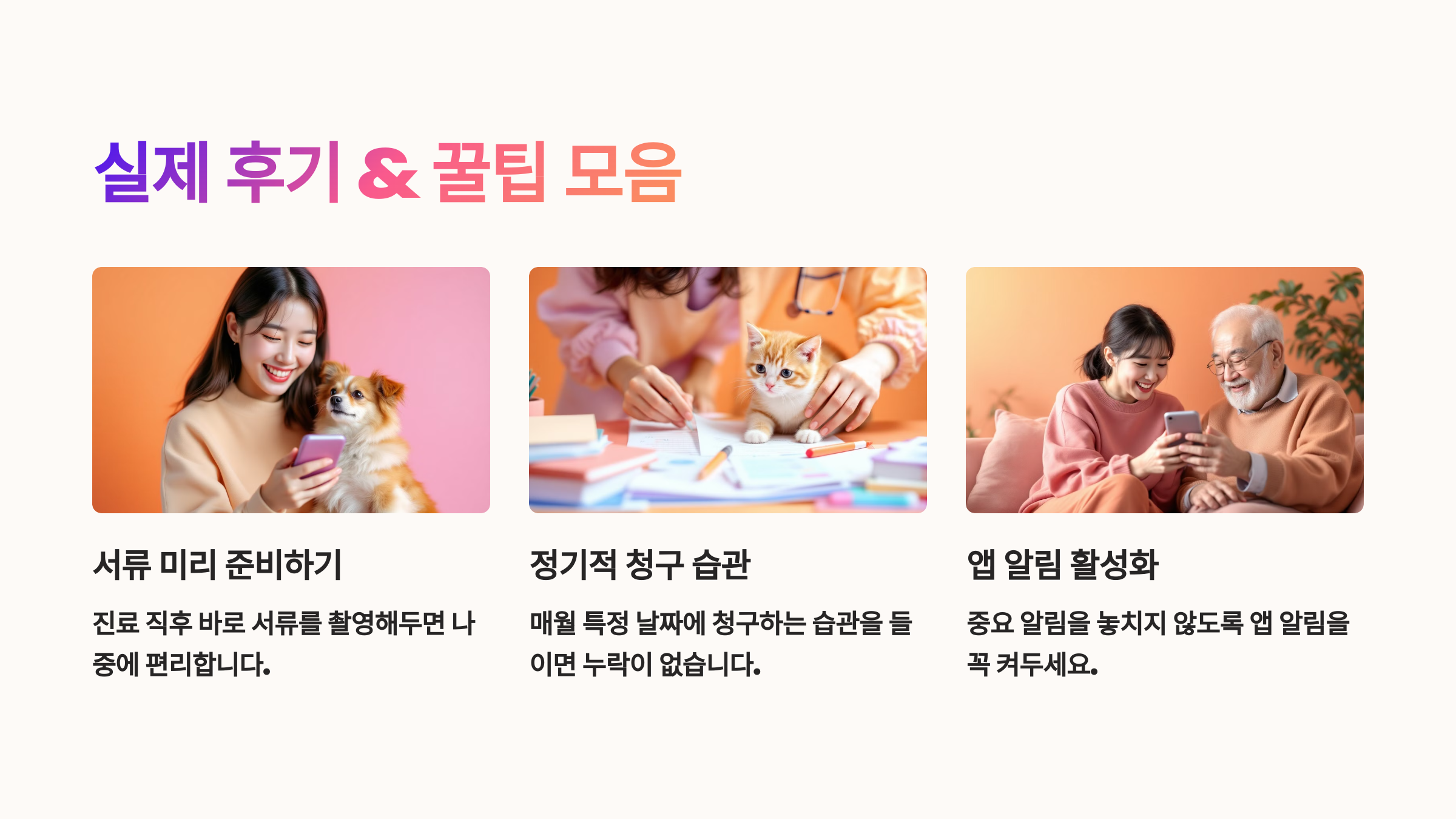 📣 반려동물 보험금 청구 후기를 찾아보면 청구는 간편해졌고 만족도는 높지만 아직 일부 불편한 부분도 있다는 의견이 많아요. 현실적인 반려인의 경험담을 공유해드릴게요! 🐾📖