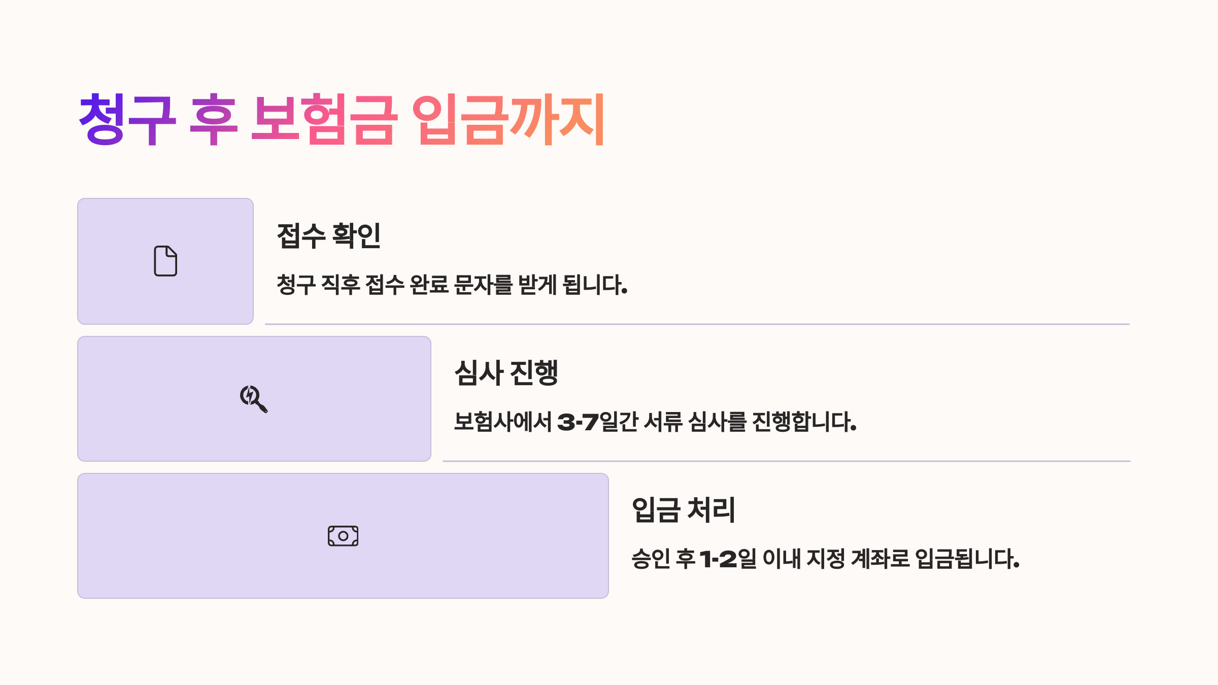 - ✅ 대부분 1~3일 내 보험금 입금 완료