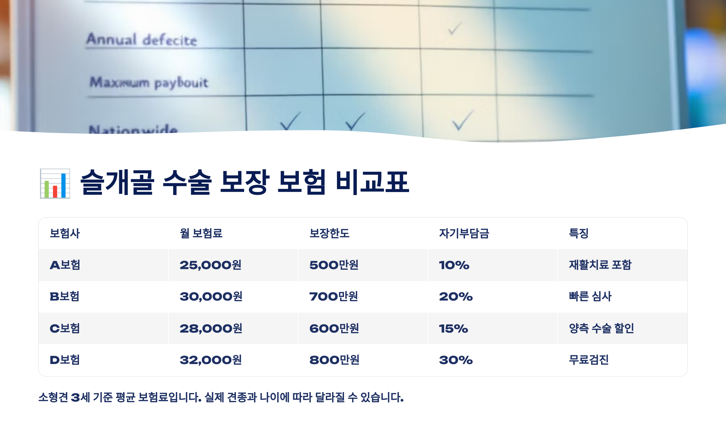 이제 어떤 보험사가 우리 아이에게 가장 적합한지 비교 기준이 생기셨을 거예요. 다음 섹션에서는 슬개골 보장 비교 요약표로 핵심만 정리해드릴게요! 📊
