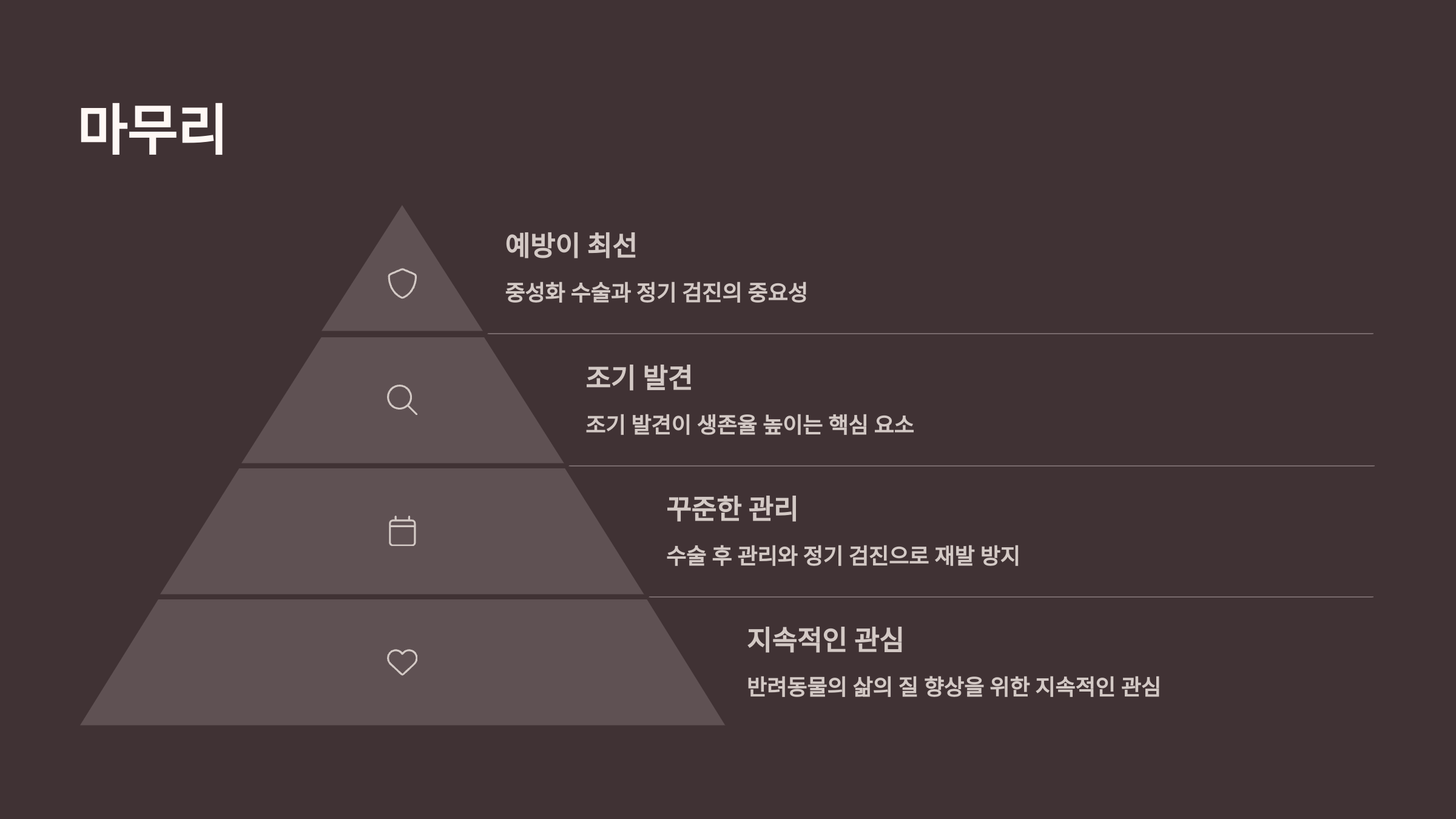 저희 아이가 유방암 진단을 받고 수술을 결정하기까지 정말 많은 고민을 했어요. 하지만 빠르게 결심하고 수술을 진행한 건 전이가 의심되기 전에 제거하는 것이 예후에 훨씬 좋다는 수의사님의 설명 때문이었어요. 🐶🩺